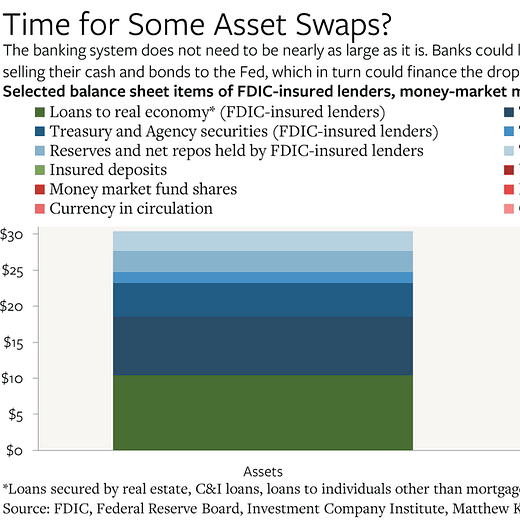 I think this is the most important lesson we can take away from the SVB collapse: If all bank deposits are backed up by the full faith and credit of the U.S. government, banks in their capacity as depositories and payment processors are essentially public institutions. And if that’s the case, well, why is all my government-insured money funding privately held and profit-generating institutions? Why can’t I just open a free checking and savings account at the Post Office?
