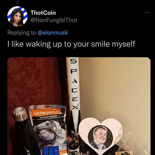 Well, the Babylon Bee is now back on Twitter, among other previously suspended/banned accounts, and Musk is clearly either deleting Twitter or making it radically free speech, most likely the former, so I guess it’s nice that Musk still takes his exes’ needs seriously.